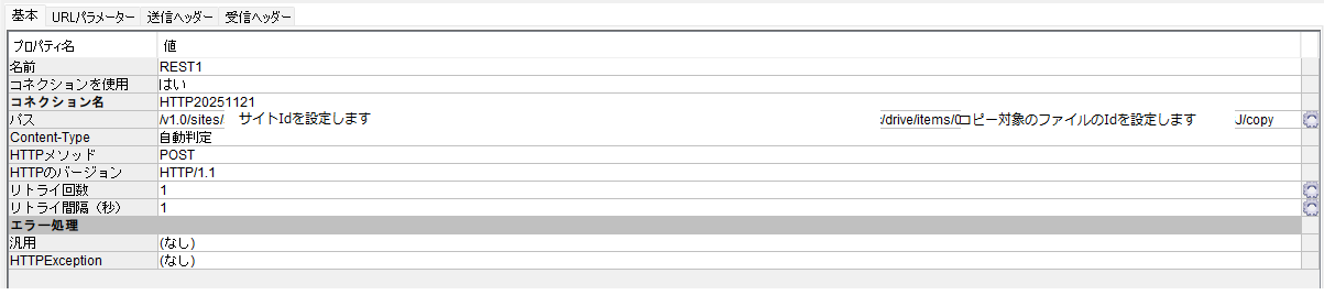 RESTコンポーネントでMicrosoft Graph API へリクエストを送信してSharePoint内ファイルのコピーを行います。