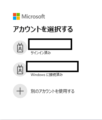 アカウントサイイン画面が表示されたら、対象アカウントをクリックしてください。
