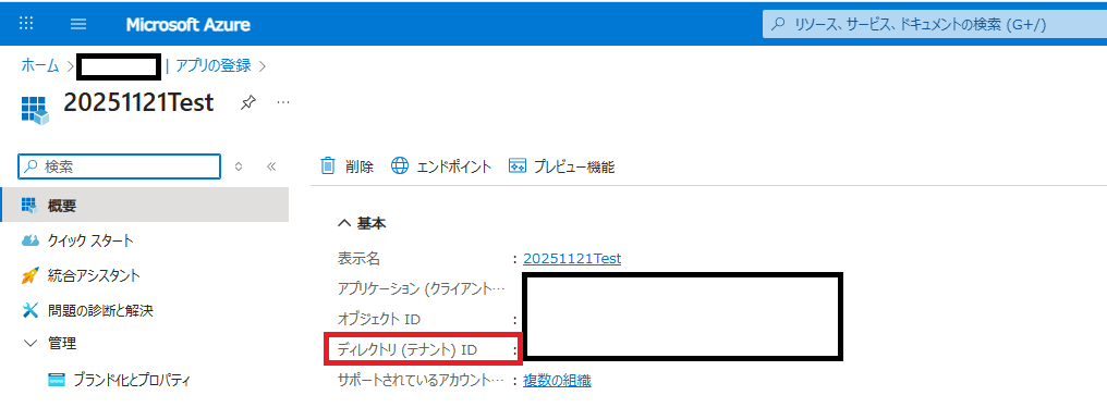 クライアントID:Microsoft Azureの対象アプリのアプリケーション (クライアント) の値を設定します。