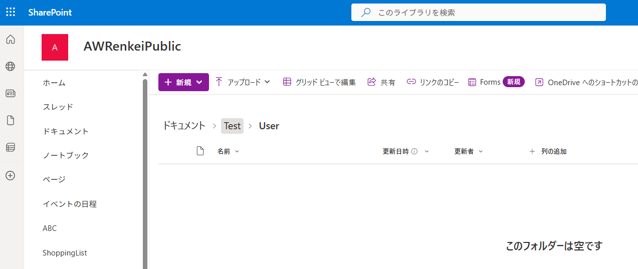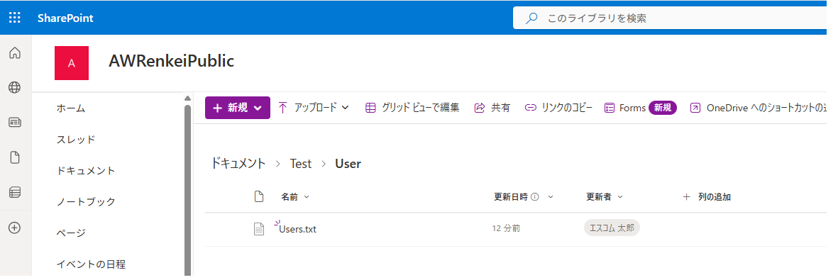 今回Test/User配下のUsers.txtファイルを削除したいため、RelativePathに「/Shared Documents/Test/User/Users.txt」を設定します。