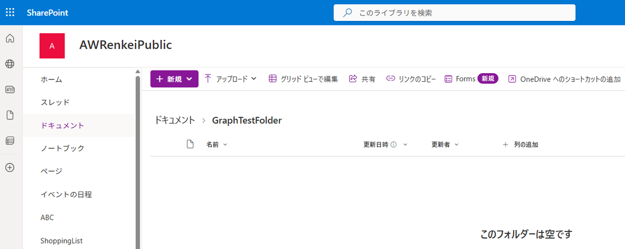 対象サイトID、アイテムIDの取得もMicrosoft Garph APIを使用して取得します。