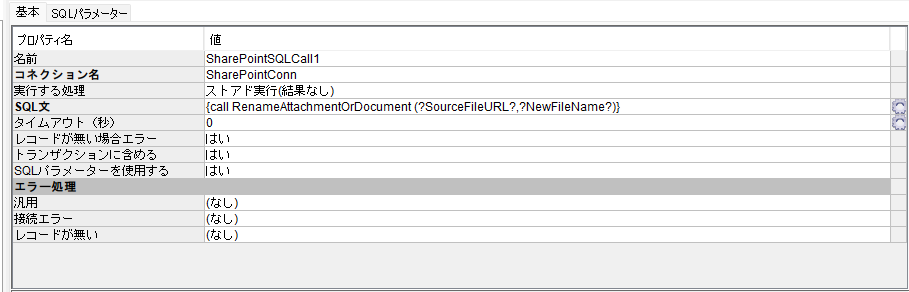SharePointSQLCallコンポーネントのSQLパラメーター設定