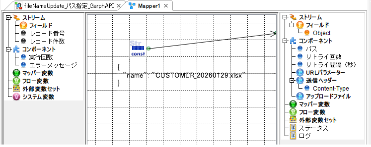 例:itemIdにcustomer.xlsxのIdを設定します。
