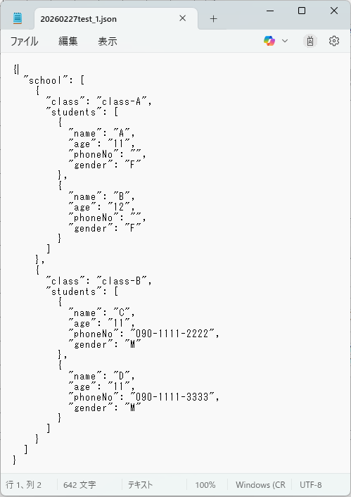 ・ファイルパスに対象JSONファイルのパスを設定します。